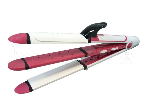 3 в 1: плойка, гофре, выпрямитель Напряжение питания 220В Потребляемая мощность 35Вт Максимальная температура рабочей поверхности 220 град.С Вращающийся шнур Ненагревающийся наконечник. Диаметр щипцов 25мм Длина 26см Инструкция на английском
