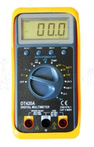 Технические характеристики цифрового мультиметра DT420A Диапазон измерения емкости: 400n-100uf Диапазон измерения сопротивления: 400-40m Диапазон измерения тока: 400u-10a Диапазон измерения напряжения: 400m-1000v Авто диапазон: 3 3/4 цифр Возможности: Проверка батареи: 1.5V-3 В-9 В Автоматический диапазон: Да Проверка диодов: Да Зуммер непрерывности: Да Транзистор тест: Да Автоматическое отключение питания: Да Удержание данных: Да Особенности: DCV: 200 м /2/20/200/600v±0. 8% Ориентировочная стоимость целого: 2/20/200/600 В ±1. 0% DCA: 200μ/2000μ/20 м/200ma±1. 2% , 2/10a±2. 0% ACA: 200μ/2000μ/20 м/200ma±1. 5% , 2/10a±3. 0% DCA ( С помощью зажима фитинги ): 200а /600а (0.1mV/0.1A) ±1. 2% ACA (с помощью зажима фитинги): 200а /600а (0.1mV/0.1A) ±1. 5% Ом: 200/2 К/20 К/200 К/2mΩ±1. 2% ; 20mΩ±1. 5% Температура: -20 °C ~ 1000°c±3. 0% , 0 °F ~ 1800°f±3. 0% Габариты: Размеры: 145x70x35 мм.