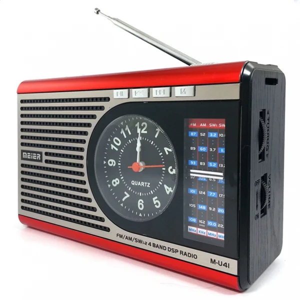 FM: 87-108 MHz AM: 522-1620 KHz SW: 3.2-22 MHz Фонарик 1Led Часы Разъёмы: USB, AUX 3.5mm, TF(до 32Гб), SD(до 32Гб) Питание: аккумулятор встроенный (зарядка 5V) / 220V шнур в комплекте (ТОЛЬКО ДЛЯ ЗАРЯДКИ АККУМУЛЯТОРА) / 2*R20 (в комплект не входят) Гнездо 3.5mm 5B для заряда аккумулятора Размер: 22 х 13 х 7 см