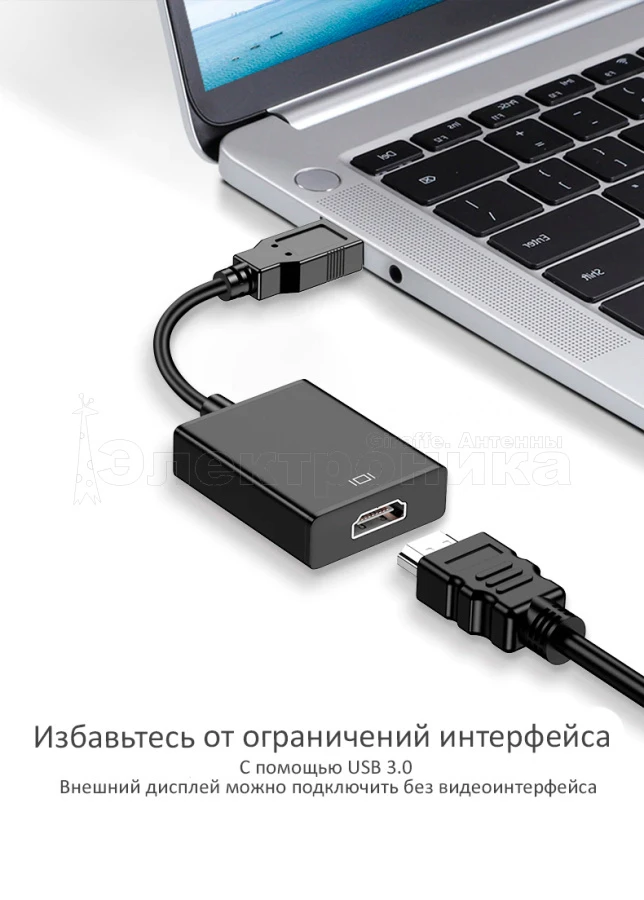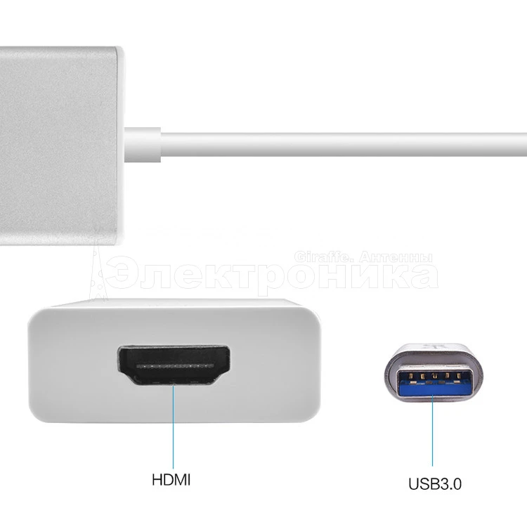 Адаптер USB 3.0 - HDMI: При помощи адаптера USB HDMI можно подключать компьютер через интерфейс USB к телевизору в высоком качестве, монитору или проектору с интерфейсом HDMI. Он будет передавать аудио-видео информацию в высоком качестве с компьютера на ваш HD-телевизор или монитор.